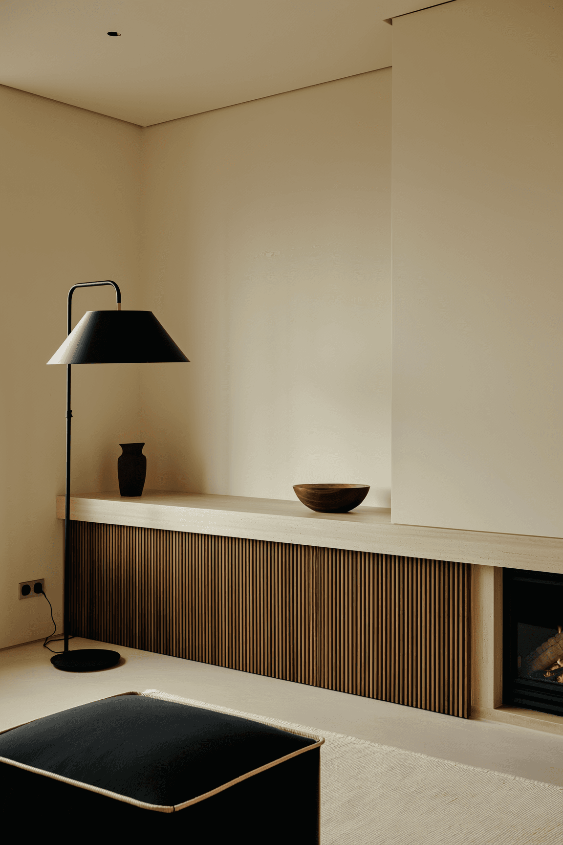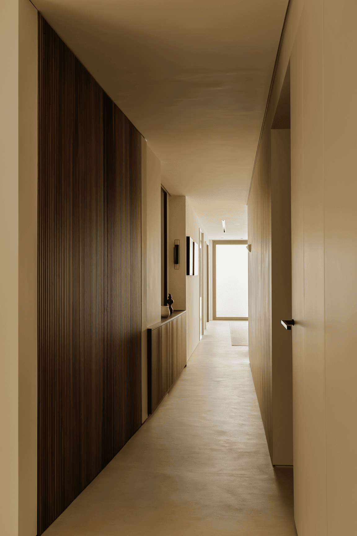 Custom walnut credenza with vertical slat door design