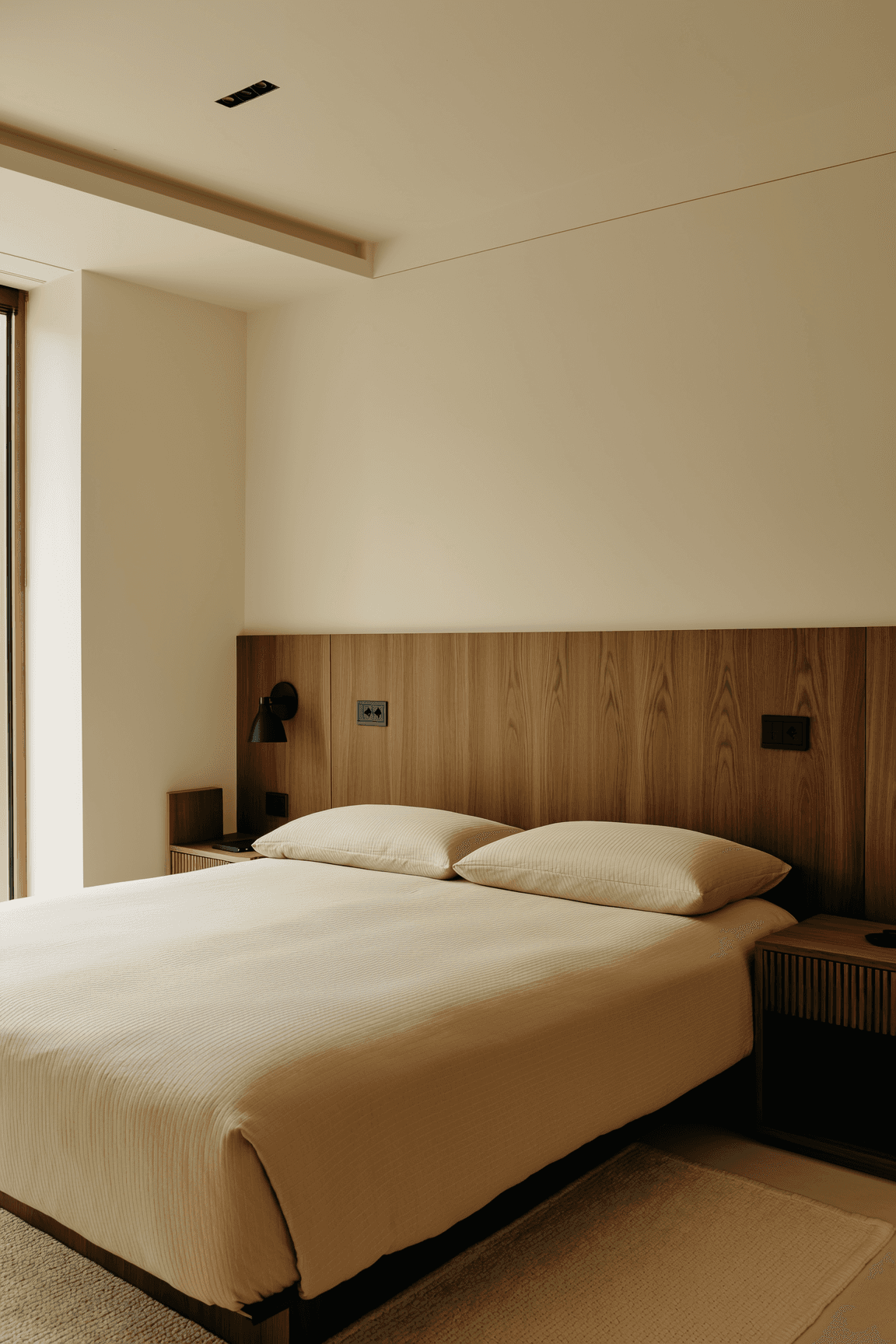 Bedroom wall paneling with concealed wardrobe storage