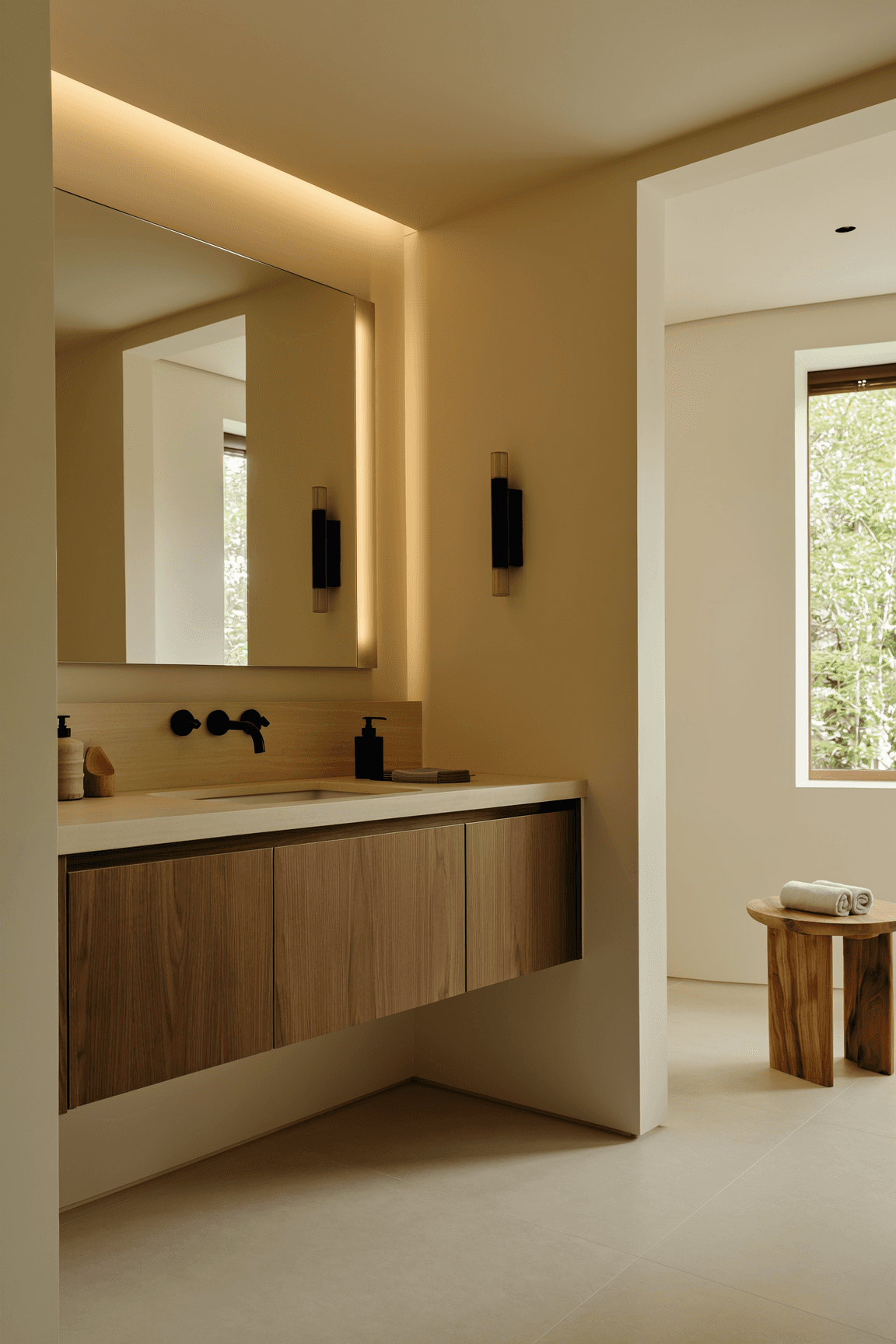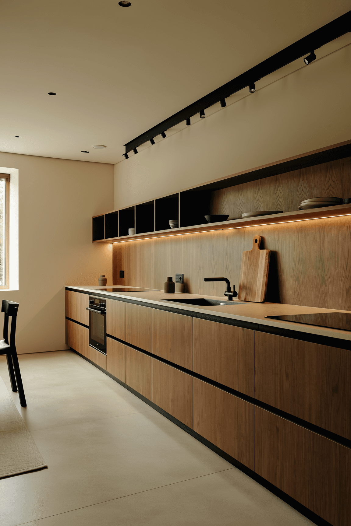 Coordinated walnut finishes throughout residence